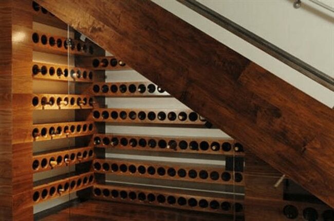 Wine enthusiasts will love this ingenious storage solution tucked under the stairs.