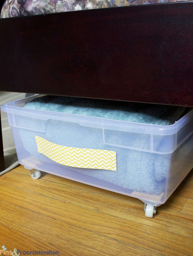 Storage bins on wheels are the ultimate space-saving solution for messy bedrooms.