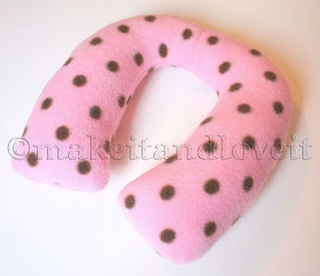 This horseshoe-shaped pillow features a delightful pink base adorned with charming brown polka dots that catch the eye.