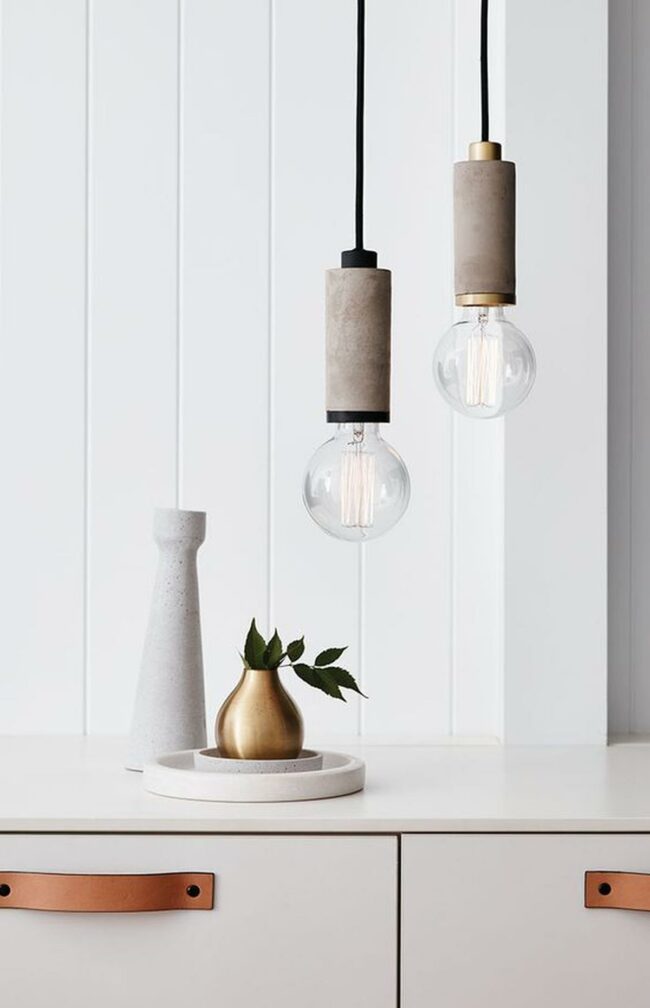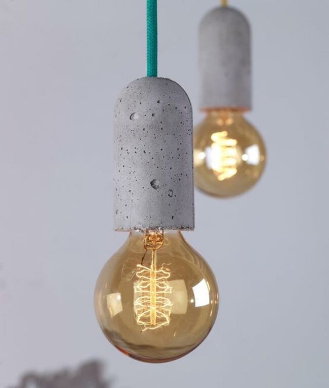 Stunning concrete pendants with glass bulbs cast a warm yellow glow through visible filaments that adds instant charm to any room.