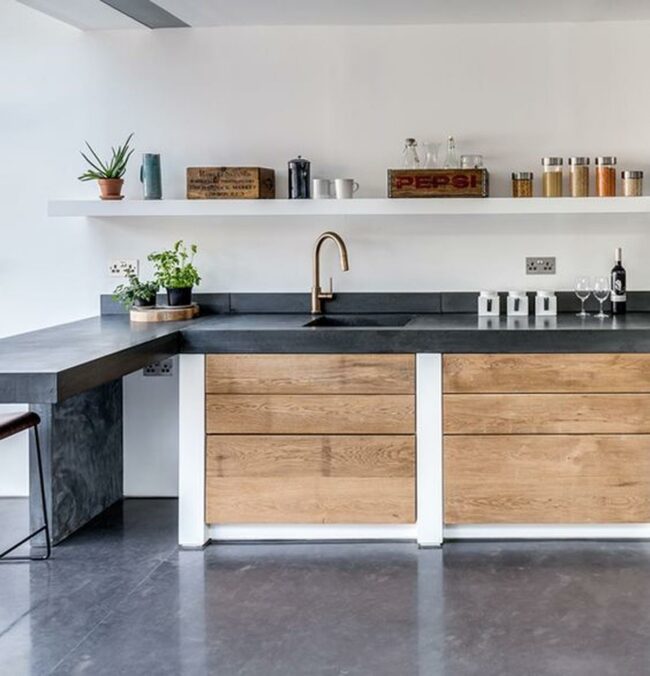 Polished concrete floors give the kitchen an industrial edge without making it feel cold or unwelcoming.
