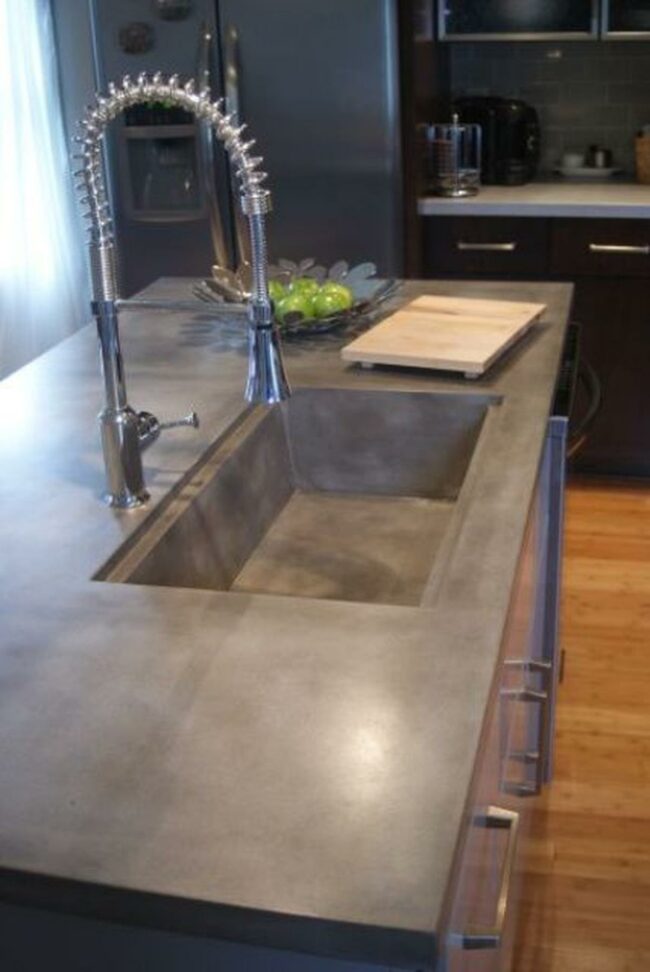 The smooth gray concrete sink and countertop deliver a contemporary feel while remaining durable for daily use.