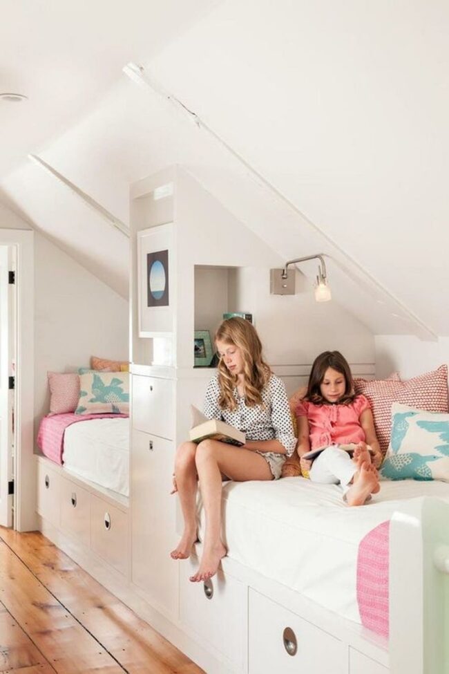 Sloped ceilings and compact areas become magical retreats that children adore, offering intimate and personalized sanctuaries.