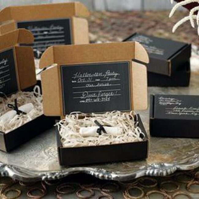 Humor blends seamlessly with spooky themes, making these boxes perfect for those who love unconventional party announcements.