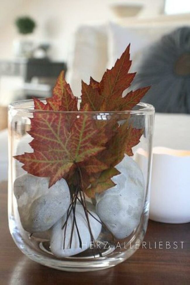 This decoration captures autumn's essence without taking up much space on a table or shelf.