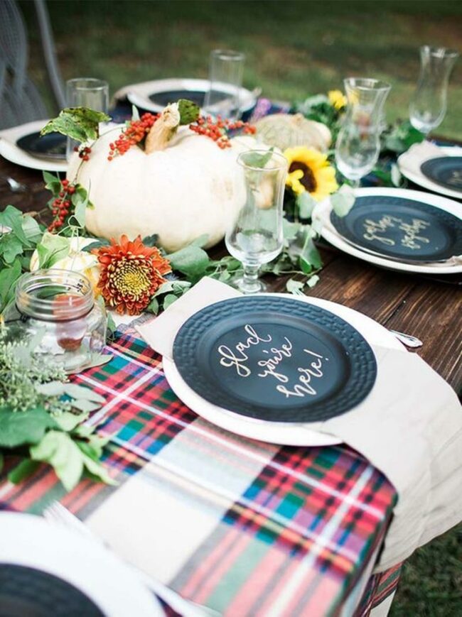 This casual outdoor setting seems made for sharing good food and making memories during the harvest season.