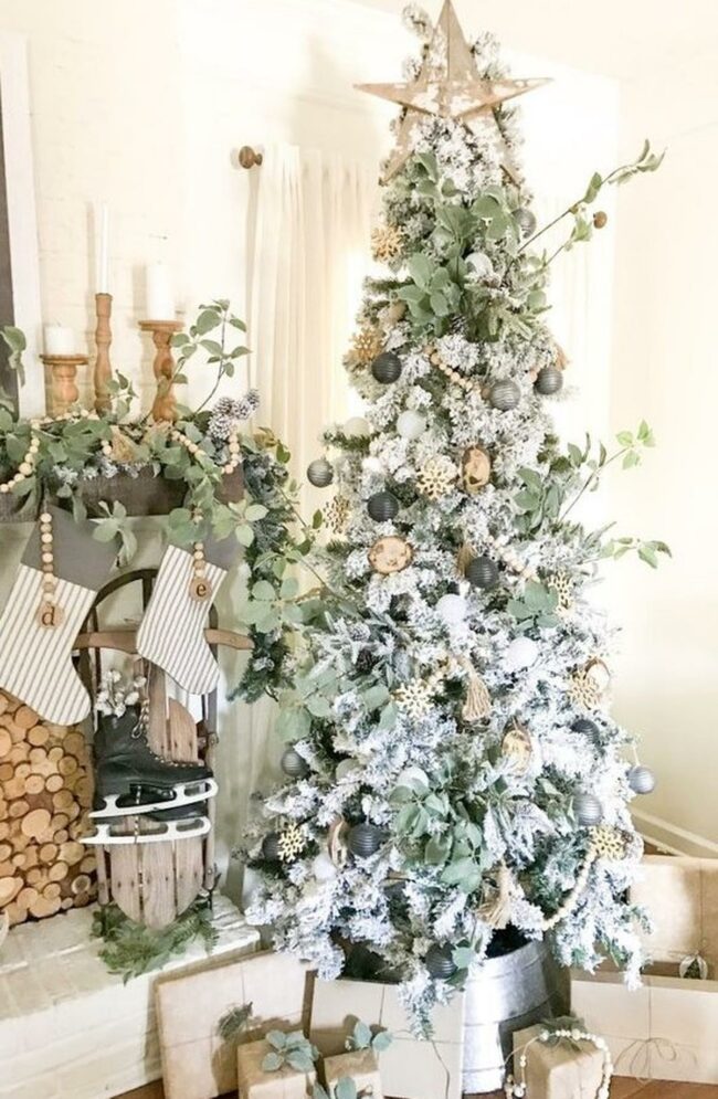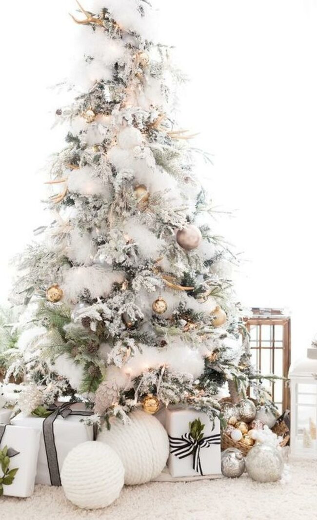Snow-covered Christmas trees bring magic to any home with their frosty white branches and natural-looking decorations.