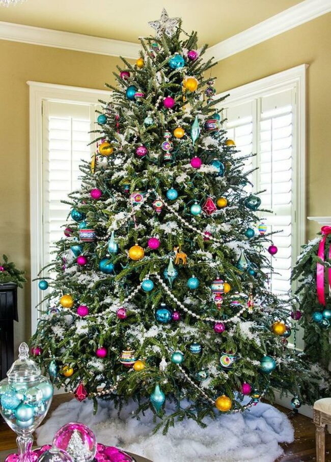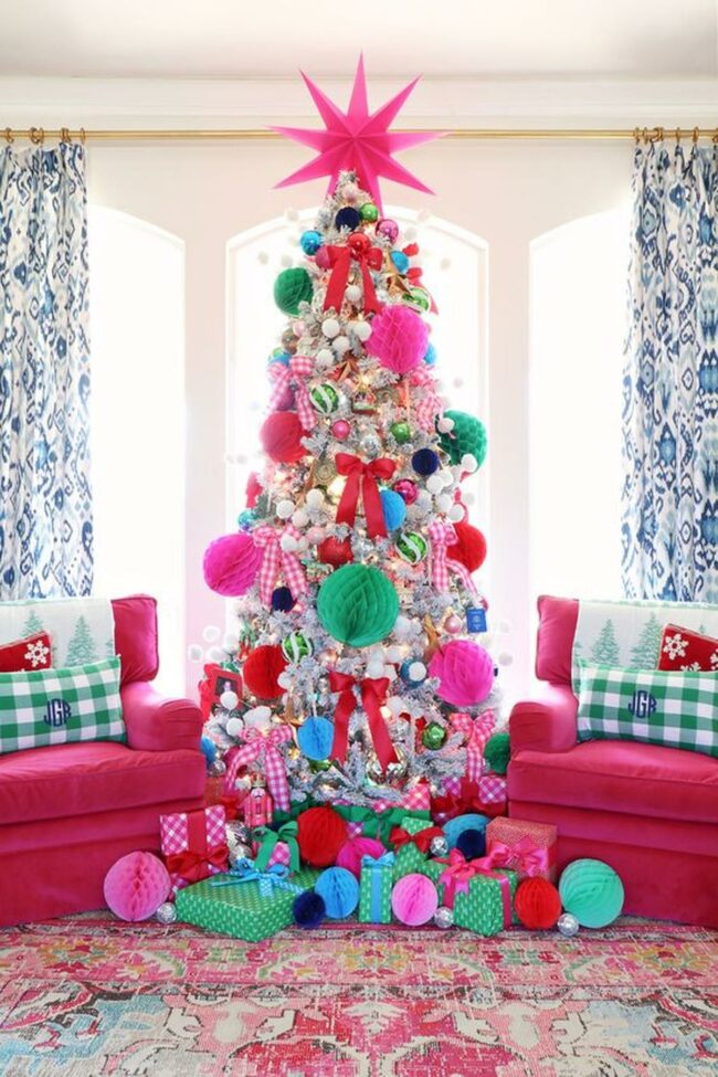 Kids and adults alike would appreciate the playful color scheme that breaks from traditional red and green decorations.