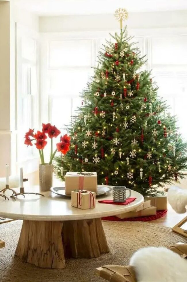 Each ornament on the tree seems thoughtfully placed, creating a balanced look that's both simple and beautiful.