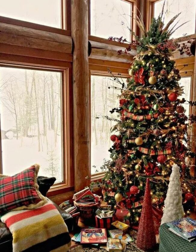 Natural light streams through the large window behind, highlighting the tree's details and making the room feel extra welcoming.