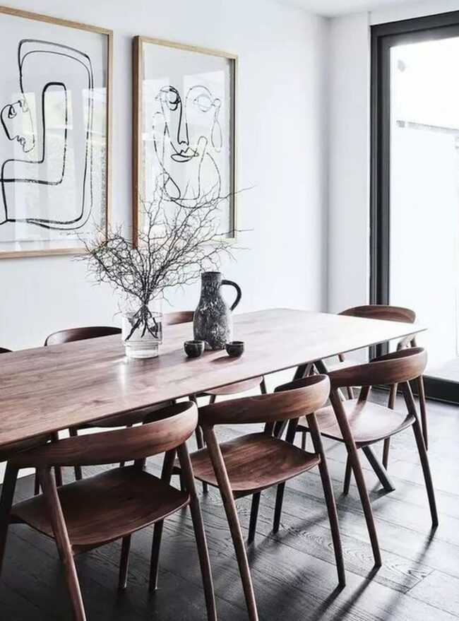 Modern dining rooms feature clean lines and natural materials that make spaces feel welcoming and sophisticated.
