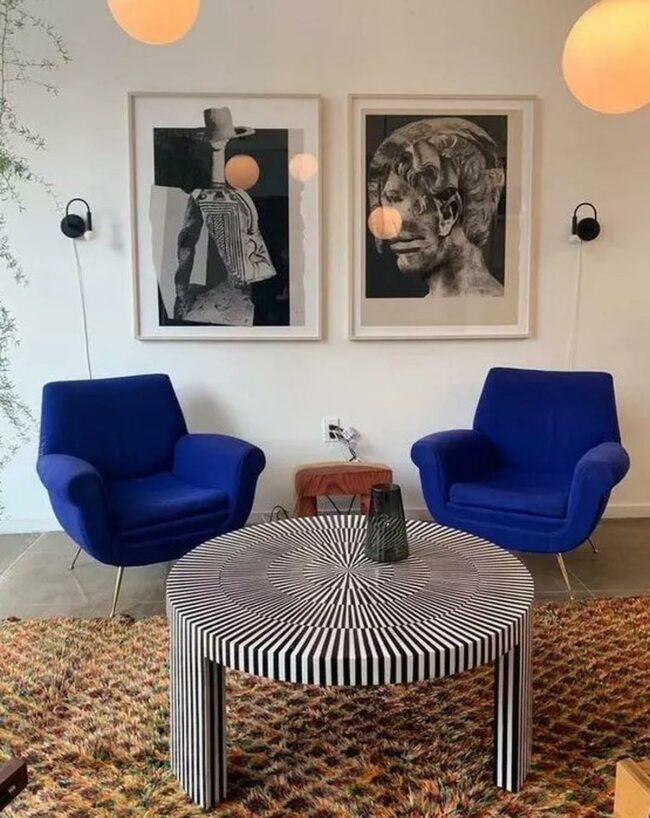 Modern living rooms are all about bold personality and unexpected color combinations.