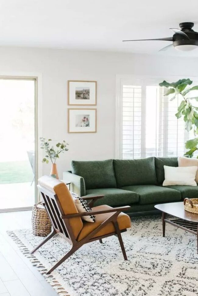 Green living rooms are a peaceful sanctuary that embraces nature's calm.