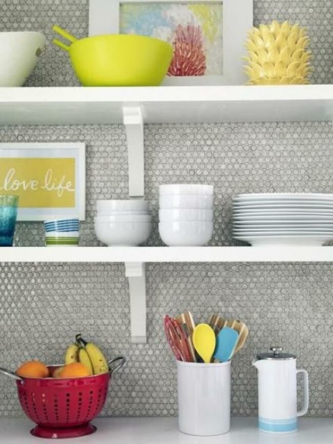 These small, circular ceramic pieces add texture and visual interest to various kitchen surfaces with minimal effort.