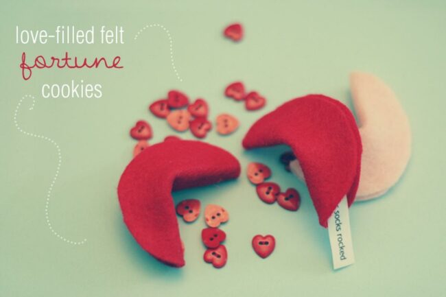 Fortune cookies are charming handmade fabric treasures that capture playful love vibes.