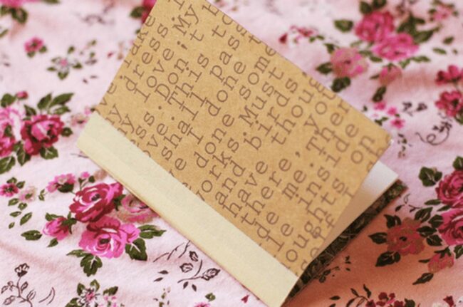 Small black text peeks out along the edges, hinting at a heartfelt message hidden inside.