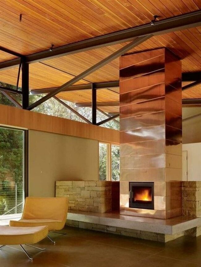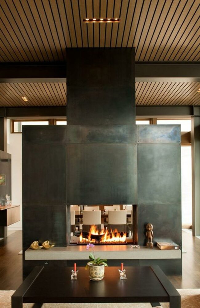 Metal-clad fireplaces transform ordinary living spaces into dramatic architectural statements that captivate and mesmerize.