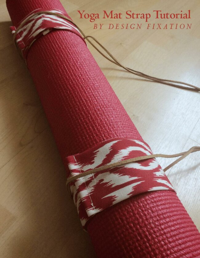 Red fabric straps with leather accents wrap around this high-quality mat, making transportation effortless.