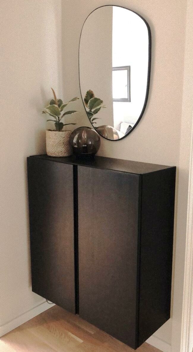 Small decorative objects rest on the cabinet, adding personality without clutter.