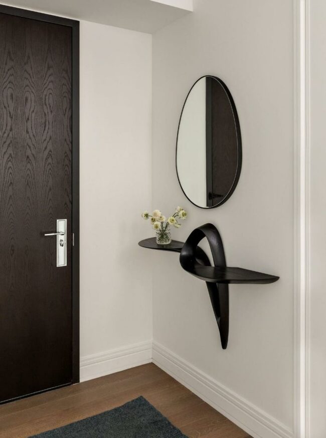 Smooth lines and neutral tones combine to craft an inviting and refined entryway that feels both modern and welcoming.