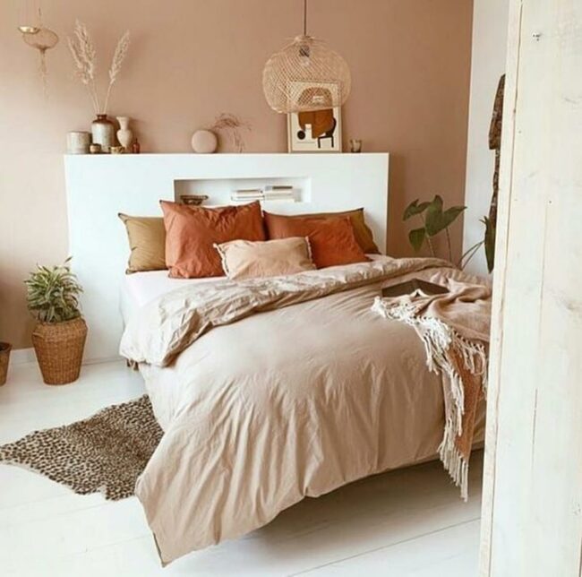 Warm, earthy walls create a calm, inviting bedroom atmosphere that welcomes you after a long day.