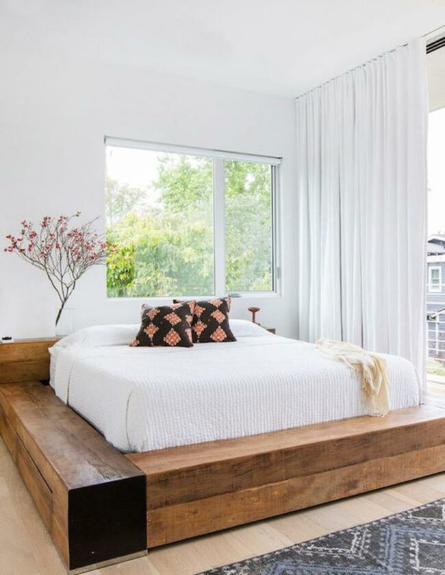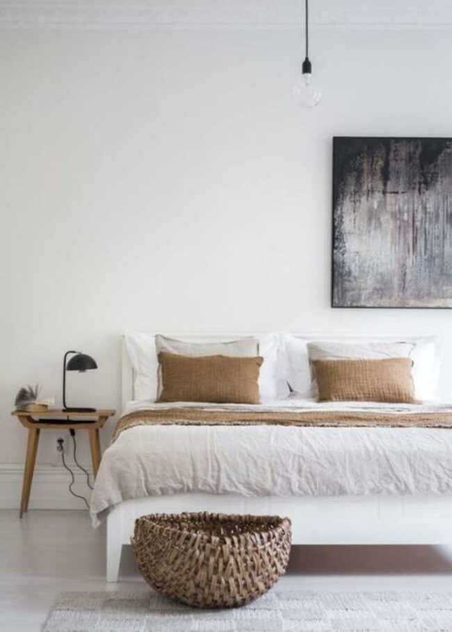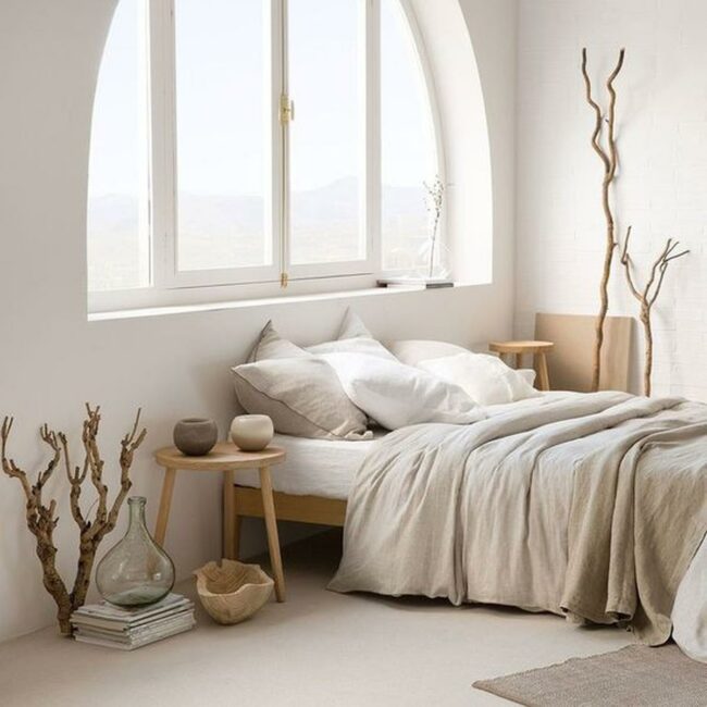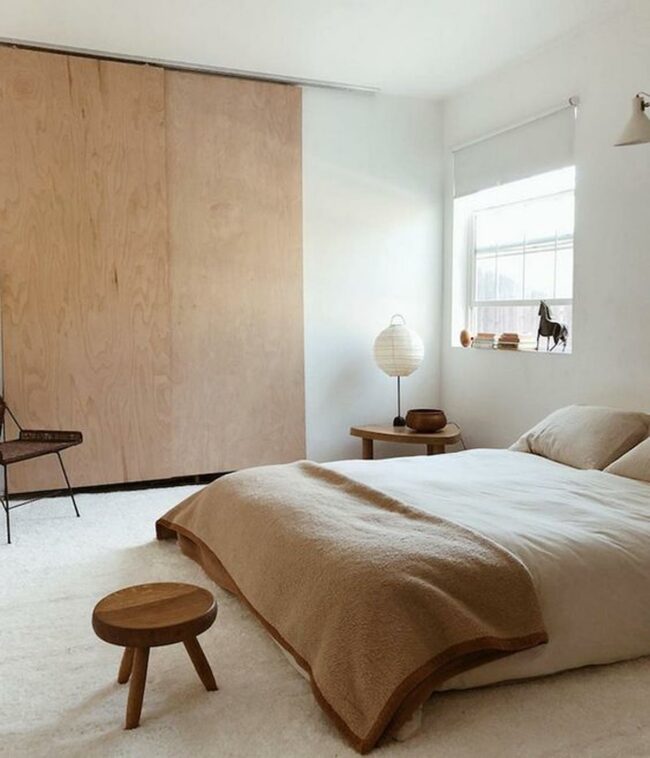 This bedroom balances natural elements with minimal decor for a peaceful atmosphere anyone would love.