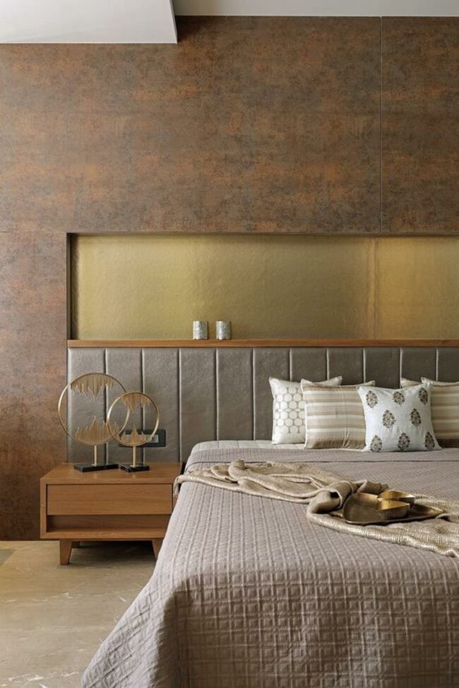 Warm, earthy tones create a calm and inviting bedroom atmosphere where you can truly relax after a long day.