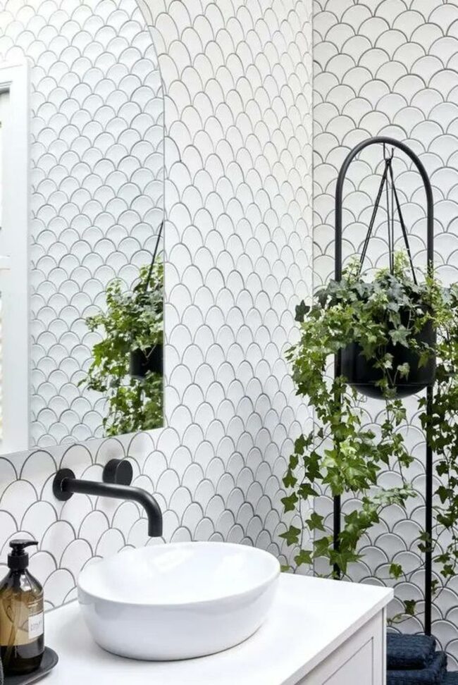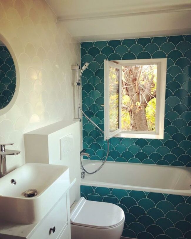 Fish scale tiles add charm and distinct beauty to any bathroom renovation project.