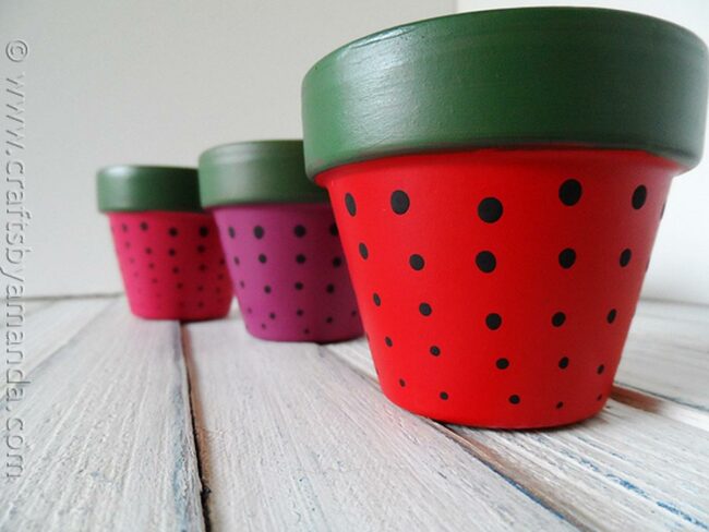 Polka-dotted pots transform simple plants into eye-catching decor.
