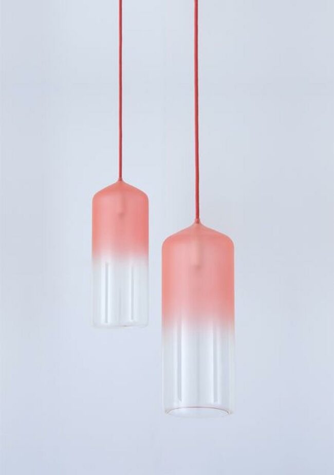 Glass shades transition from warm coral to transparent, lending a soft gradient effect that catches the eye.