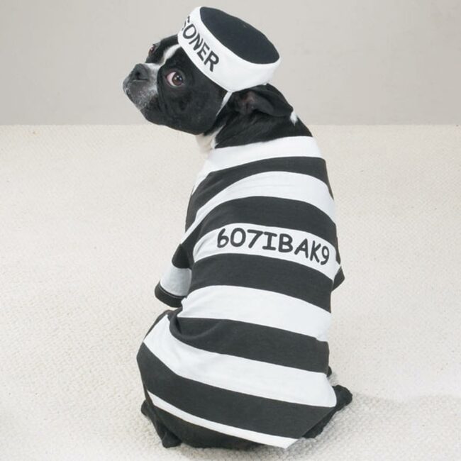 Prisoner Dog Costume is a hilarious outfit that transforms your furry friend into an adorable jailbird character.