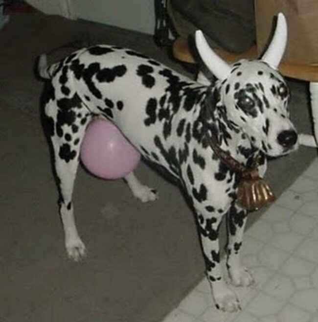 Pure joy and unexpected humor shine through this creative canine costume moment.