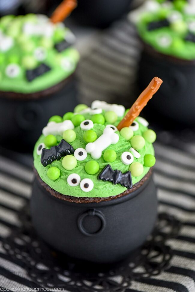 Bright green frosting fills each cupcake like a witch's magical cauldron.