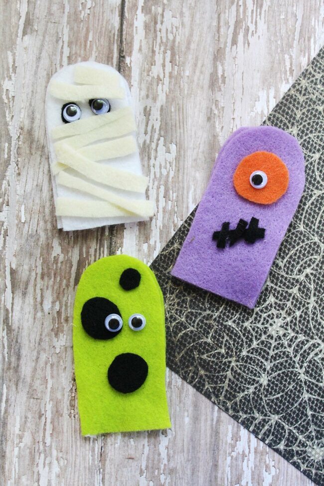 One mummy-wrapped monster sports cream-colored felt strips and giant round eyes that spark curiosity.