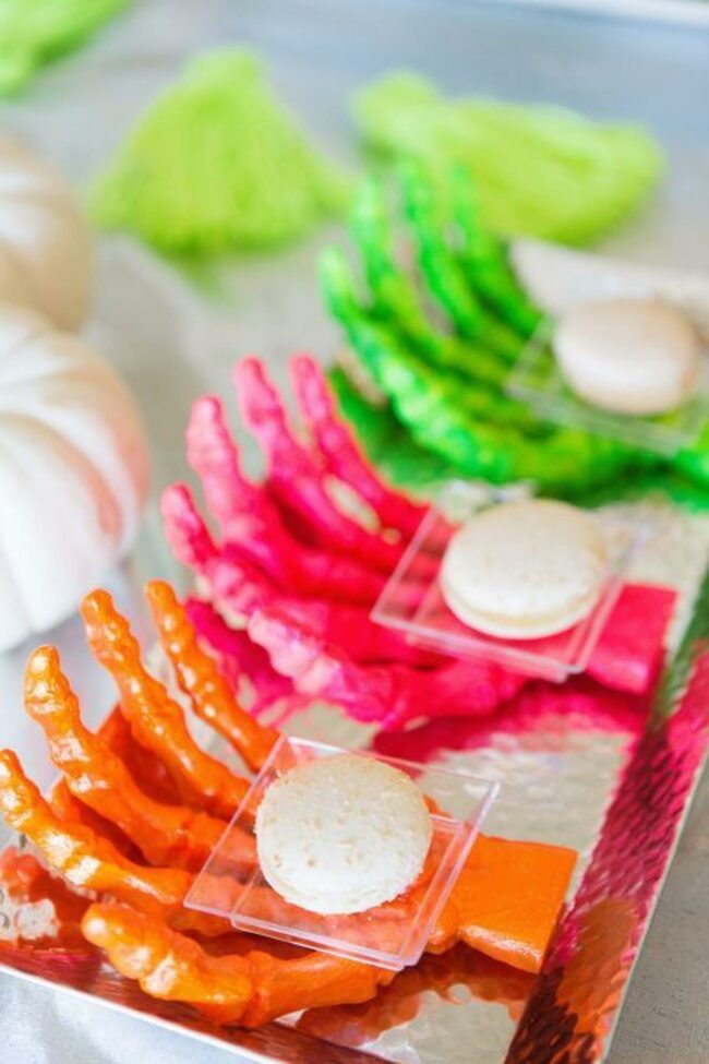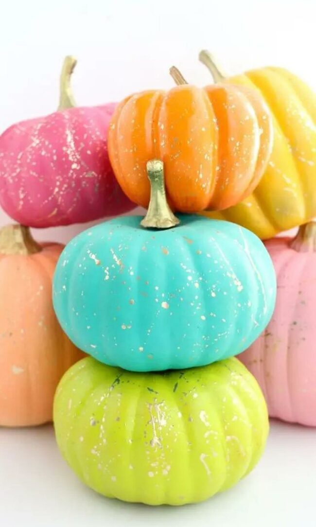 Turquoise, lime green, and orange pumpkins pop with personality and playful energy.