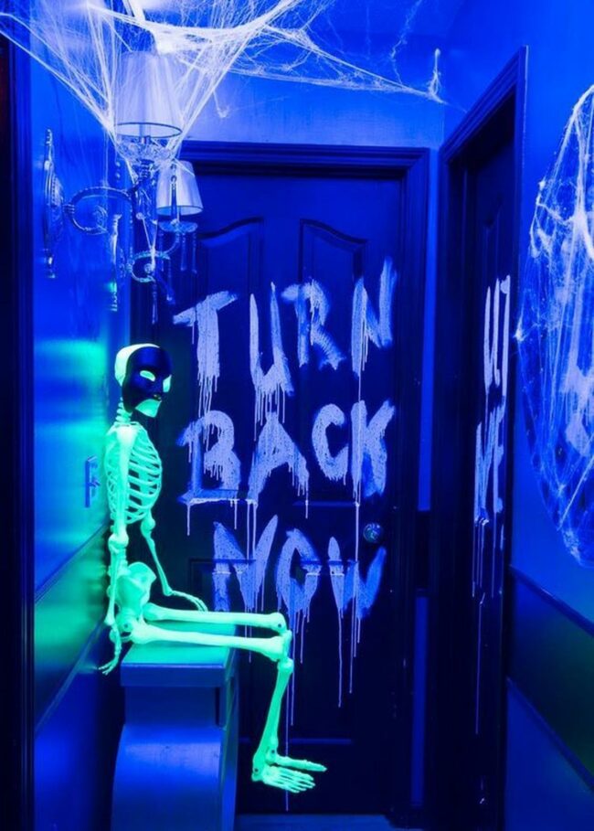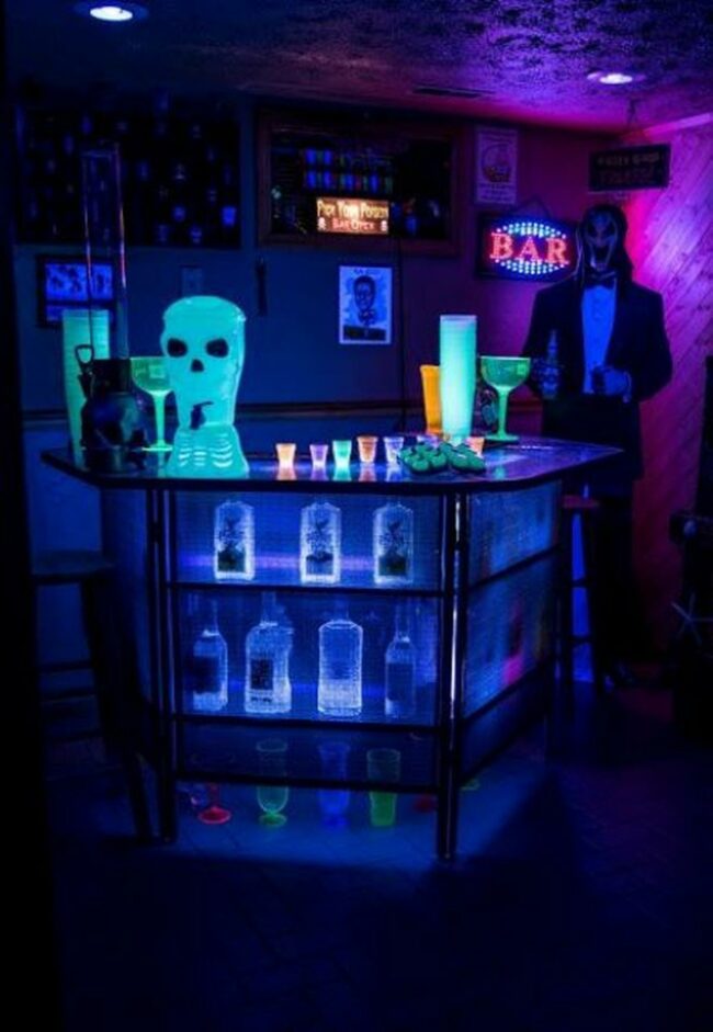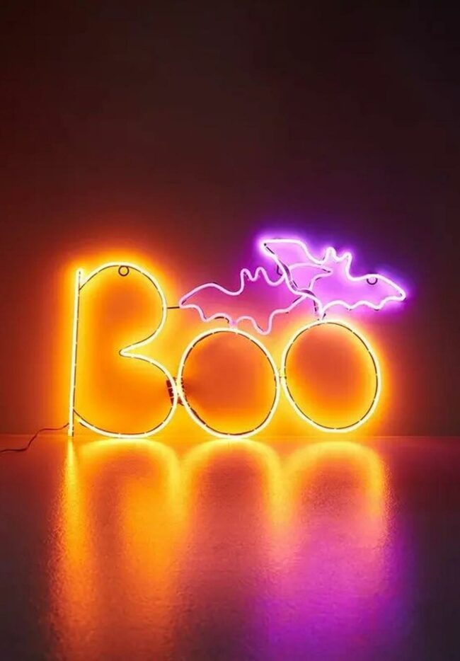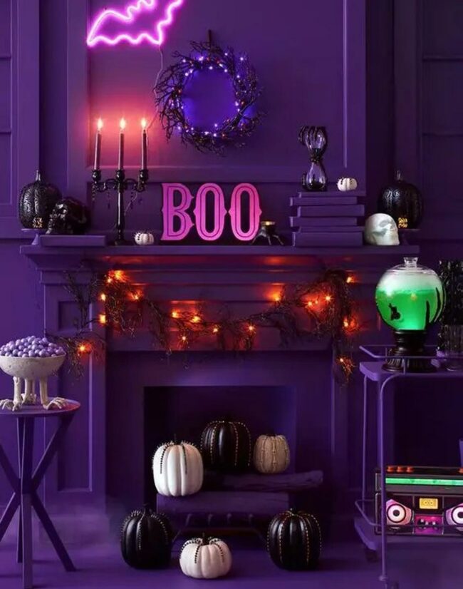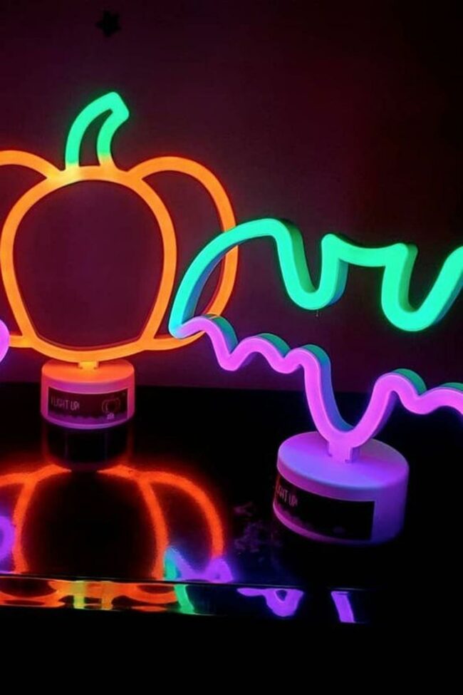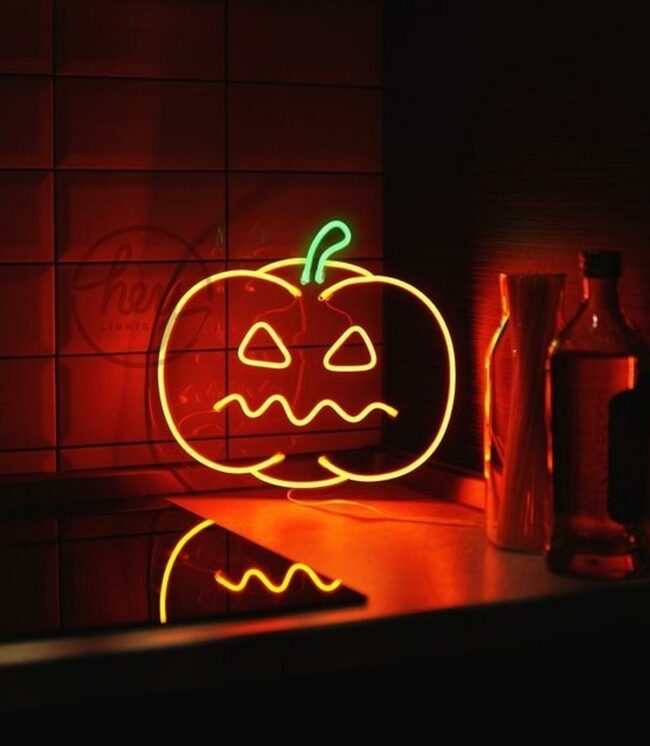 Neon Halloween decor adds a modern twist to traditional spooky season aesthetics.