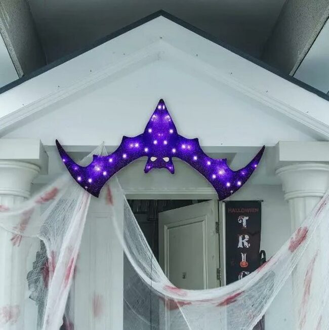 Purple glowing bats make an incredible statement when hanging above doorways, immediately catching eyes with their dramatic presence.