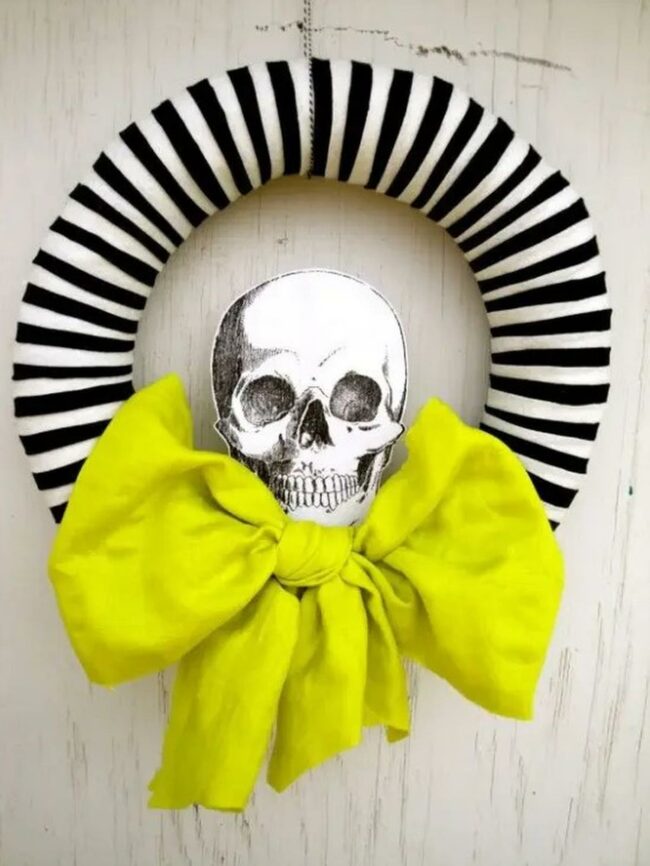 Black-and-white striped wreaths are striking statement pieces that immediately grab attention with their bold graphic design.