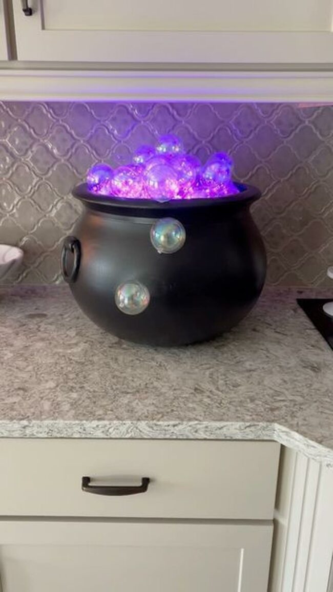 Black cauldrons with glowing purple lights instantly grab attention and spark imagination.