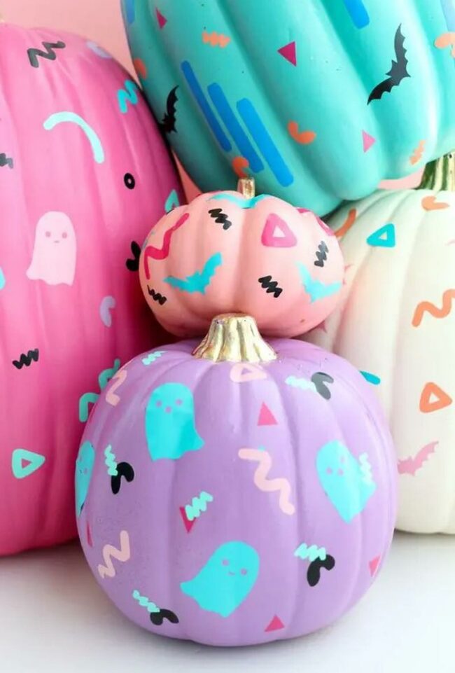 Pale pink backgrounds make these painted pumpkins stand out even more.