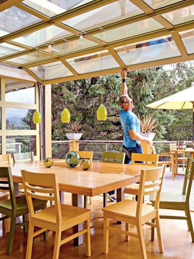 The overall effect gives you a peaceful retreat that remains connected to the outdoors while offering indoor comfort.