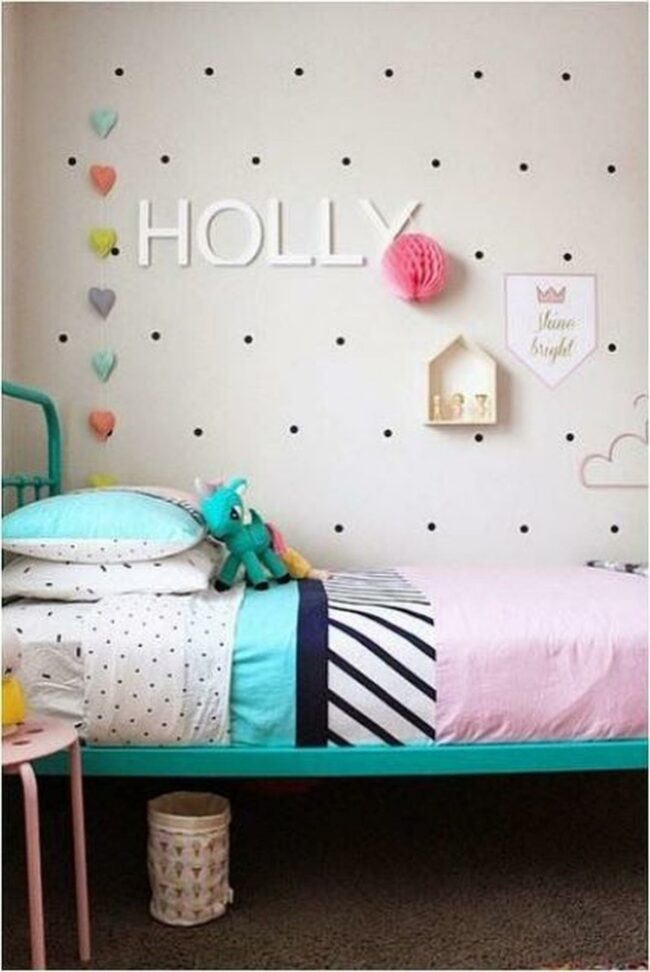 White letters spelling "Holly" add a personal touch that makes the room uniquely hers and special to enter.