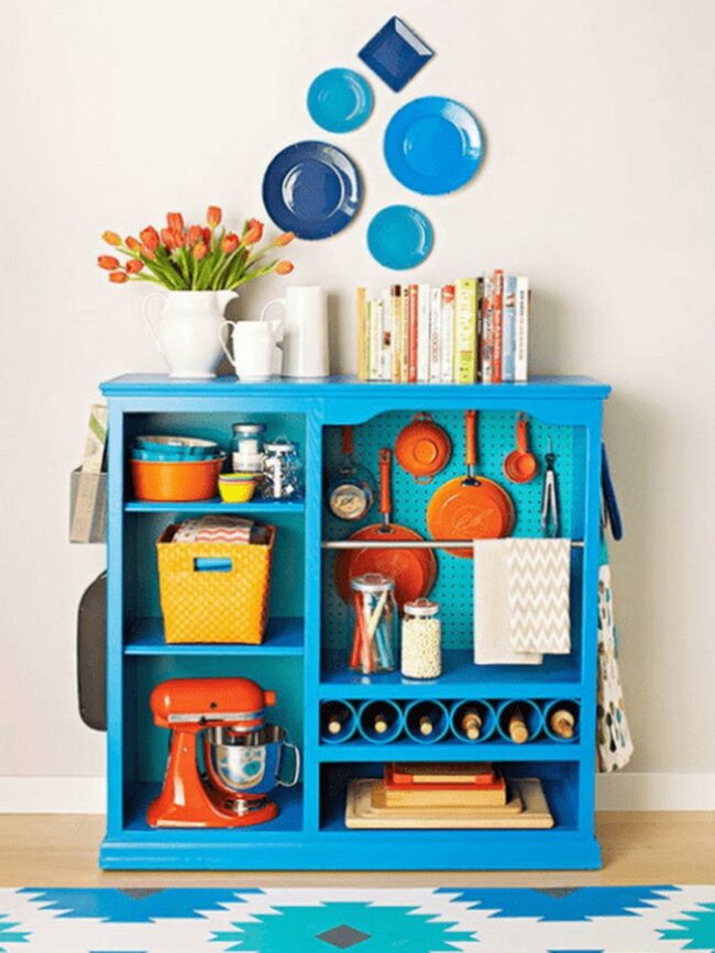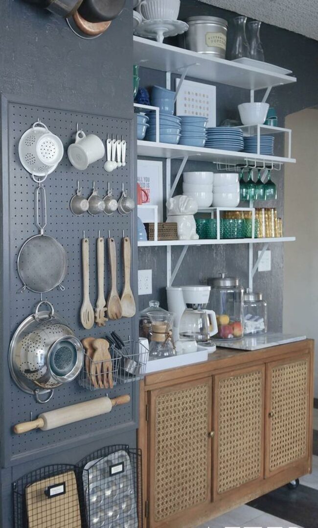 Blue Pegboard Kitchen Storage