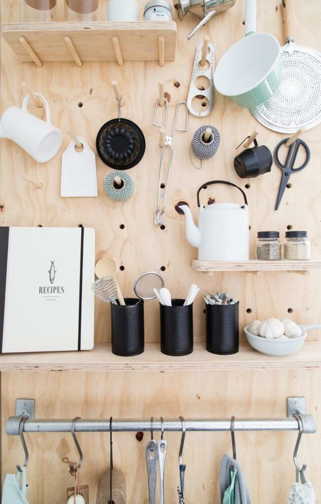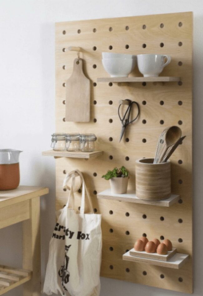 Wooden Pegboard Kitchen Display