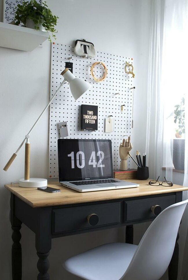 Even in a modest space, this pegboard setup proves that good design can make creativity flow more smoothly.