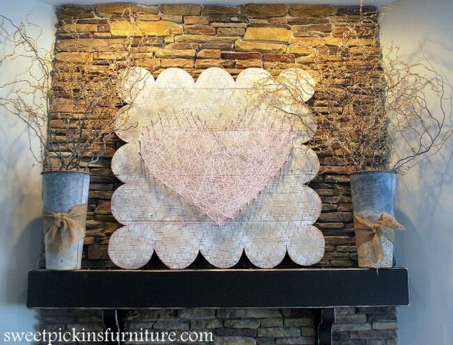 Heart string art are captivating wall decorations that blend rustic wood with playful design.