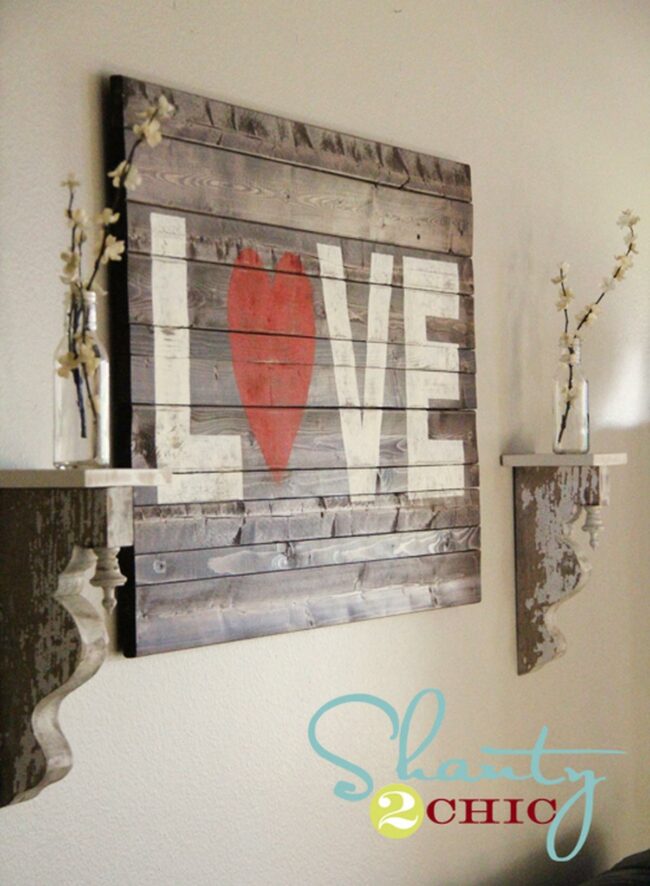 Love artwork are stunning wood slat pieces that capture rustic romance with minimal design.