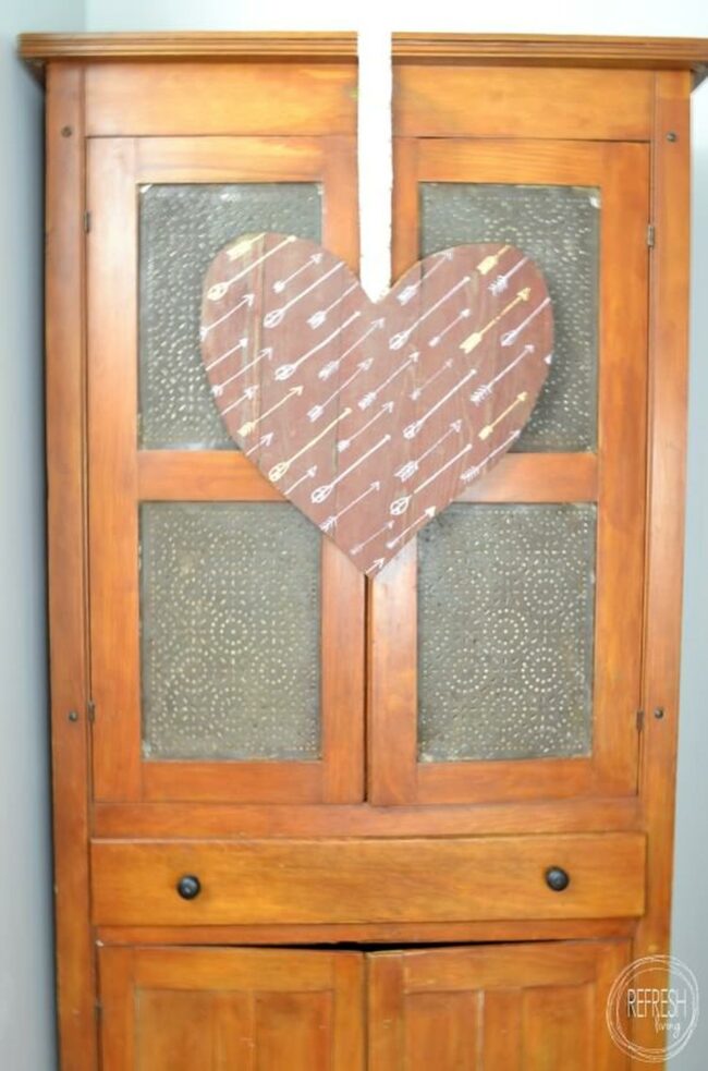 Heart-shaped decorations with arrow designs add a playful focal point to the central area.