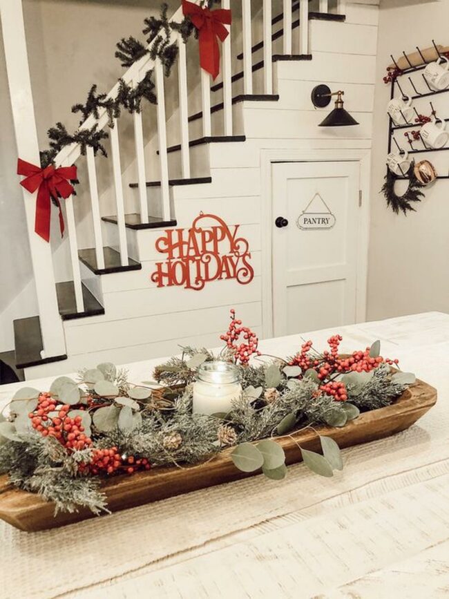 Holiday decor are warm, welcoming scenes that embrace natural comfort and simple charm.