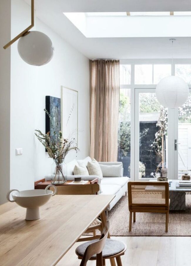 Natural textures like wood, stone, and handcrafted ceramics add warmth and depth to minimalist spaces.